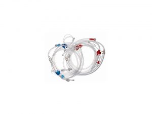 Línea venosa: por su color es la azul, ira conectada al dializador por la parte de color azul. Tiene una toma pequeña circular para añadir medicación. También tiene una cámara venosa, sensor hidrofóbico venoso. La línea venosa será la encargada una vez conectada al paciente de devolverle la sangre limpia.